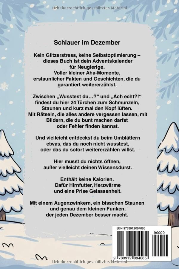 „Klugscheißerwissen im Advent“ ist dein täglicher Begleiter durch die Vorweihnachtszeit – kein Glitzerstress, keine Selbstoptimierung dafür erstaunliche Fakten Geschichten, die du garantiert weitererzählst. Klicke auf "jetzt kaufen" und freu dich auf eine lustige Weihnachtszeit