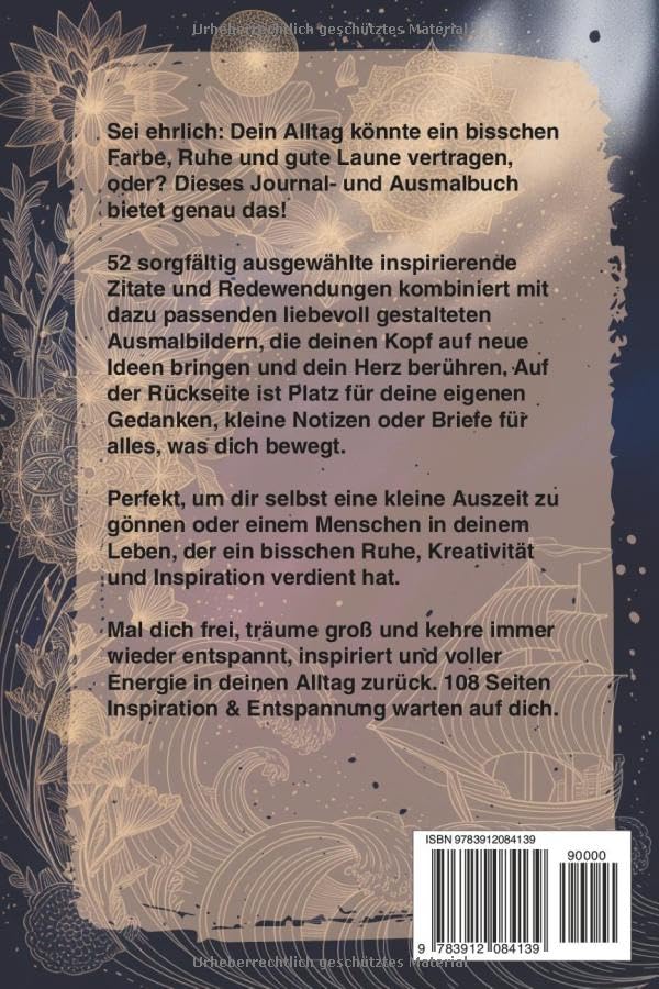 52 inspirierende Zitate, Ausmalbilder und kreatives Journal für Achtsamkeit, Entspannung & Reflexion für jeden Tag im Jahr